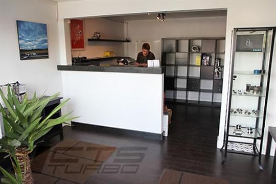 He gets out and wlaks into the front main lobby in hopes the owner would be in here, but sadly it was empty. He sits down in a chair with hsi back to the glass wall. He began to wonder if anybody was here at all, but in the background of the garage he coudl hear music palying and that was enough to sya somebody had to be ehre.