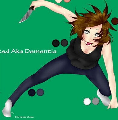 Personality: She's.. pretty nuckin' futs. XD She very much enjoys killing everything.But she loves children and will protect them with her life. And even though she is technically blind she developed such a killer sense of smell it doesn't seem to phase her.