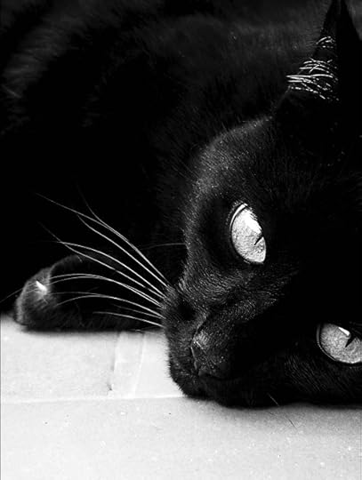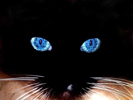 Pure black she-cat with odd silver eyes and a few splashes of silver on her fur