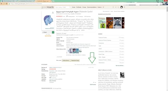 ეს ახლა ქართულ გამოცემაზე გადასვლისთვის გავაკეთე, იმიტომ რომ აქტუალურია ჩვენთვის. იგივე ხერხით შეგიძლიათ სხვა ენოვან გამოცემებში "იმოძრავოთ" :) მაგალითად იმ ყდით გინდოდეთ ინგლისური წიგნის დამატება რაც თქვენ გაქვთ, და არა რაც პირველია მოცემული გუდრიდსზე.
