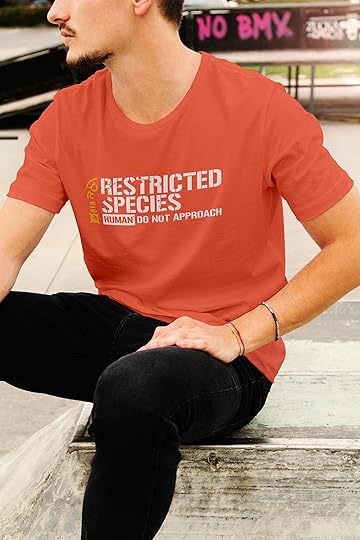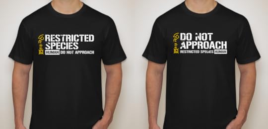 I am really liking how the shirt tells a story - you see "Restricted Species" as the biggest text, then you look closer and see "Human", then "Do Not Approach", and it tells a story. There's tension, there's a reason to be interested, it brings up a bunch of new questions that make us want to know more. It's a really good shirt.