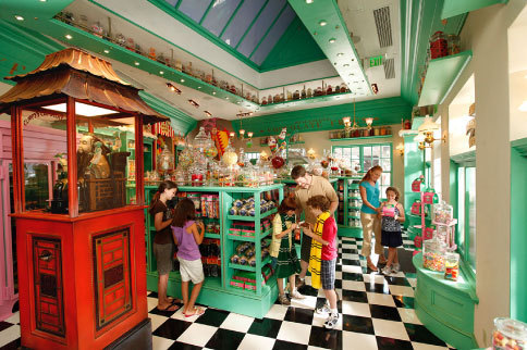 "There were shelves upon shelves of the most succulent-looking sweets imaginable. Creamy chunks of nougat, shimmering pink squares of coconut ice, fat, honey-coloured toffees; hundreds of different kinds of chocolate in neat rows; there was a large barrel of Every Flavour Beans, and another of Fizzing Whizzbees, the levitating sherbet balls that Ron had mentioned; along yet another wall were ‘Special Effects’ sweets: Drooble’s Best Blowing Gum (which filled a room with bluebell-coloured bubbles that refused to pop for days), the strange, splintery Toothflossing Stringmints, tiny black Pepper Imps (‘breathe fire for your friends!’), Ice Mice (‘hear your teeth chatter and squeak!’), peppermint creams shaped like toads (‘hop realistically in the stomach!’) , fragile sugar-spun quills and exploding bonbons." —Description