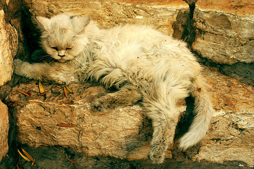 -> scars || he has one around the base of his left ear, from when a cat held onto it to batter him in a battle, and then once yanked off, claws left lines. All but one healed and disappeared