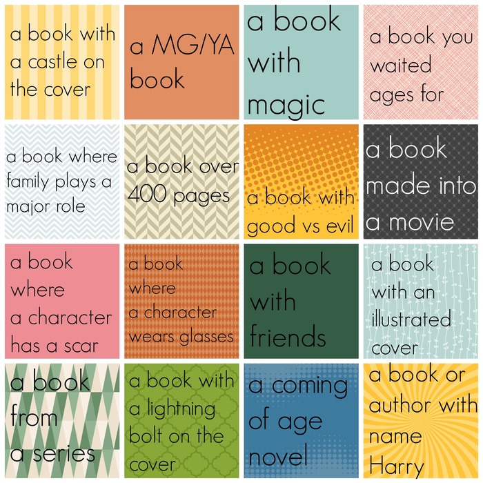 Well, I'll have lots of time to finish this, because I'll start reading along in February, with HP and the Order of the Phoenix. I'll take part in the commentary, but I pretty much know the first three books by heart, so... I might watch the movies when the time comes, just to refresh my memory. At least we'll have read ADwD by then, my first volume of it has a castle on the cover. So, anyway, I'll make another comment with the bingo and update as I progress. Hope you don't mind if I steal your idea about how to make it look, Brianna.