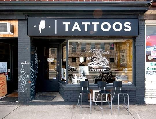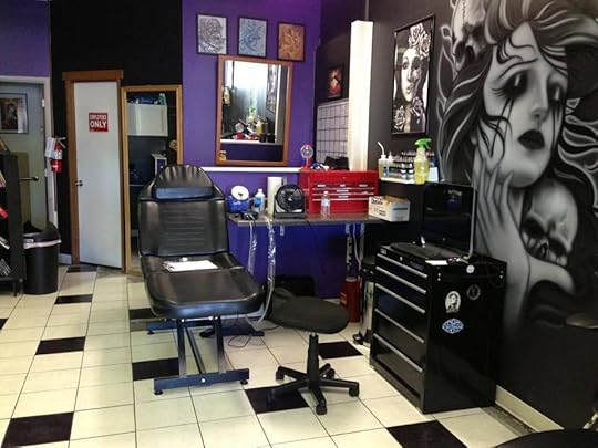 A tattoo shop with an industrial feel with an unappealing first impression. It's still an artistic design with art hung and decorating every wall and even the bar. All tattoo designs hand drawn by Diederik (view spoiler). The main area is designed to hold and entertain people. This includes a small bar area that Diederik maintains when he's not tattooing someone. Tattoos are done in the back of the shop in a private room. It's a comofortable feel, warm atmosphere if you don't mess with anyone or anything there.