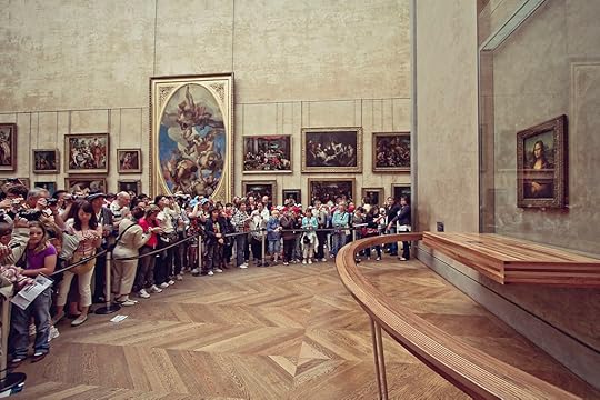 Ah, of course, the smaller paintings.... To emphasize your point Heather - here are some other shots of Mona Lisa from the Louvre: