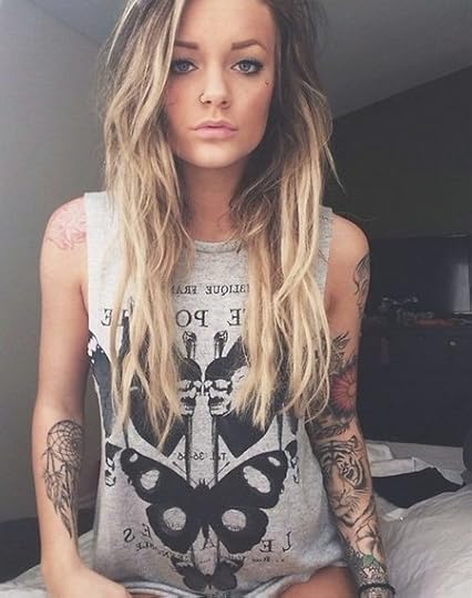 Sloan is two different people. Outside of her house she's a punk with lots of tattoos, a nose piercing, an pretty much every part of her ear is pierced. But at home she has to hid it all. She covers most of her tattoos and takes out most of her piercings except for the ones her pastor 'father' has deemed acceptable. She's a sweet little daughter in his eyes but he's so wrong. She knows her past, and it runs through her veins. She can't help but be badass and rough around the edges.