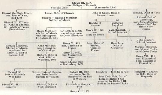 Hana wrote: "I got a bit confused about the succession and where the Earl of March and his two year old son Roger Mortimer fit in the picture. Inevitably this family tree has spoilers. "