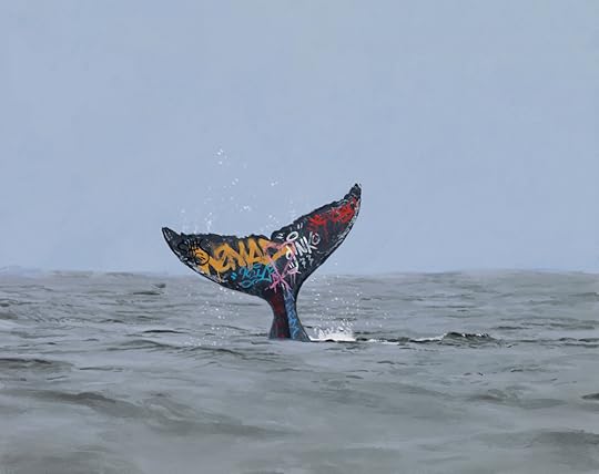 "Josh Keyes' newest series features subjects both manmade and natural, their common element being several layers of graffiti that cover a space shuttle, a melting iceberg, and even a whale’s tail. For the last ten years these marks had remained in the background of Keyes’ paintings, adding detail to the supporting elements of the environment rather than being integrated into the subjects of his work."