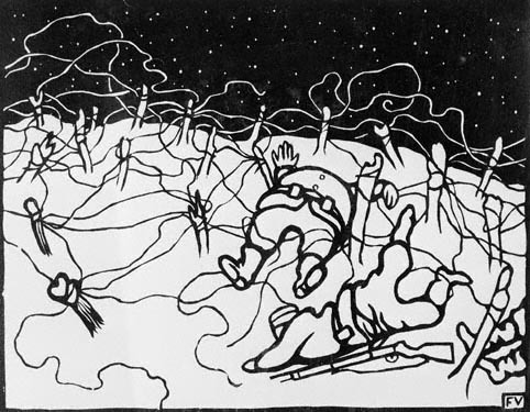 Les barbelés, 1916, xylographie, 25,2 x 33,5 cm, Galerie Paul Vallotton, Lausanne.