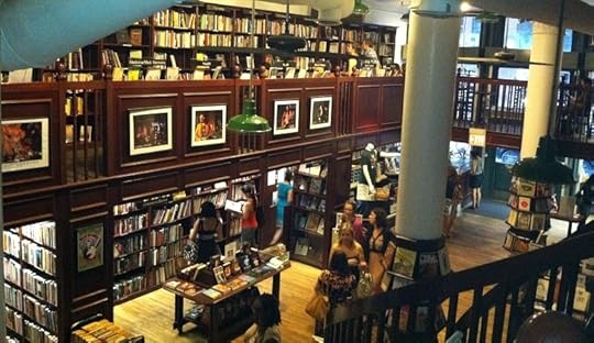He lead her to the back of the store to the sci-fi and fantasy section. Pointing to books covered in blood and monsters. "These are my books."