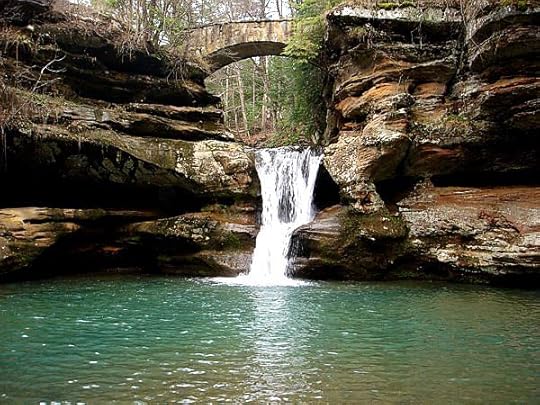 Ana stopped right at the edge of where the ground stopped and where the water started to flow. She was mesmerized by the fascinating sight in front of her that was unlike anything she'd ever seen before. There was a cool breeze that surrounded the waterfall and although it wasn't super strong it was strong enough to blow the hood of her red riding hood off of her head to reveal her brown hair. She hardly noticed this though because of what was in front of her.