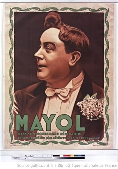 This illustrates a couple of things: Proust's notion of Mayol, when he wrote “c’est le chant dansé. . . tout son corps suit le rythme […] il danse en marchant” (“it is a song that is danced . . . his whole body follows the rhythm [...] he dances as he walks”); and also the two mentions of Mayol in Recherche in connection with Charlus and the busdriver and with Morel in hiding."