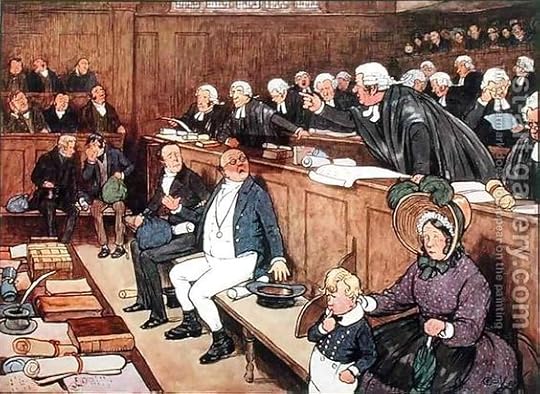 people owe their freedom to what I will call “the stomach court.” We read that if a verdict on a case has not been delivered as dinner approached, a juror’s stomach will take the upper hand and rule the juror’s mind. As Pickwick acclimatizes himself to the court, readers follow his eyes, his emotions, and his worries as he looks about the room. The lawyers parade into the court and we are set for jury selection. The first potential juror is called. Of course, he does not want to be away from his day job. Then next man is a chemist who also wants to dismissed. An interesting exchange occurs between the judge and the chemist. The Judge carries his point. The rule of law, because of its its power and prestige, wins the day. Once I was called for jury duty and can attest to the vast creativity of excuses that were presented to the judge from various potential jurors attempting to avoid their duty. Twice I was called to be a juror in a case before the court, and twice I was rejected, once by the crown and once by the defence. So much for my civic duty.