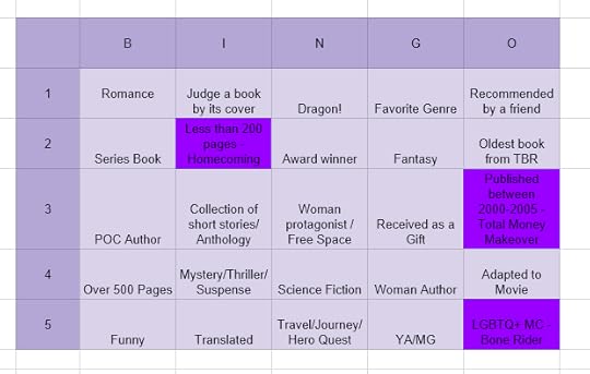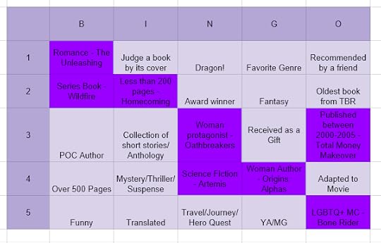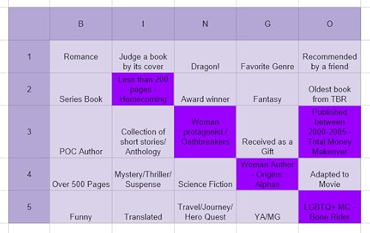 And points! You got 25 for the books themselves plus 5 for the diagonal bingo, for a total of 30. Boom.