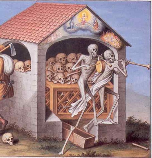 ~Devout Christians would often ask that their tomb or grave marker have some sort of skeleton motif on it to remind their visiting family members to get right with God before they too passed on ."