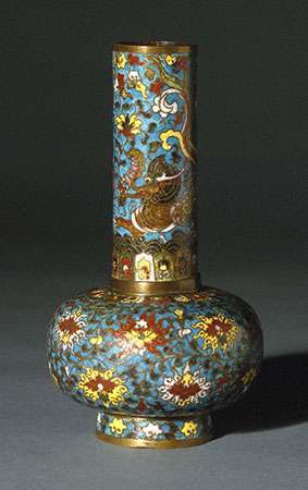There were many new developments in ceramics, along with the continuation of established traditions. Three major types of decoration emerged: monochromatic glazes, including celadon, red, green, and yellow; underglaze copper red and cobalt blue; and overglaze, or enamel painting, sometimes combined with underglaze blue. The latter, often called “blue and white,” was imitated in Vietnam, Japan, and, from the 17th century, in Europe. Much of this porcelain was produced in the huge factory at Jingdezhen in present-day Jiangsu province. One of the period’s most-influential wares was the stoneware of Yixing in Jiangsu province, which was exported in the 17th century to the West, where it was known as boccaro ware and imitated by such factories as Meissen.
