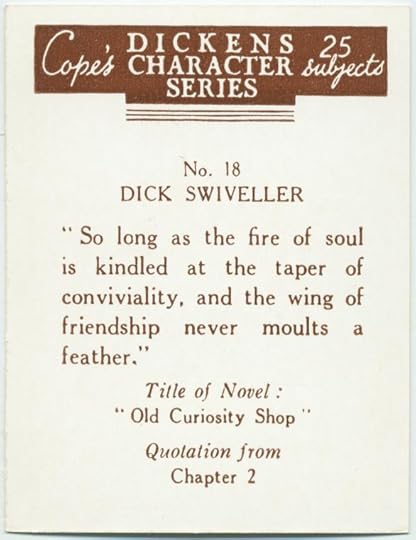 Tristram wrote: "Do you also find yourselves warming to Mr. Swiveller?"I love Swiveler, and I think he is more honest than any adult we have met, certainly more honest than grandpa, Quilp, both Brasses, and his "friend" Fred. Remember after questioning him about the man's trunk, Brass said he would never make it as an attorney? He's too honest.