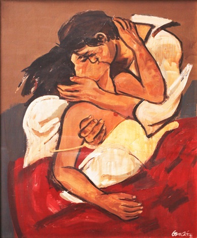 was nothing short of volatile. Their marriage swung vertiginously between passion, alienation, and anger. But through it all, both regarded their love as deep and essential. “Your word travels the entirety of space and reaches my cells which are my stars then goes to yours which are my light,” Kahlo wrote in one of many love letters to Diego. This painting unearths the complexity of their relationship, and of Kahlo’s view of love in general. Like an evolutionary drawing or family tree, the Aztec Earth Mother Cihuacoatl holds Kahlo, who holds Rivera in return. The composition emphasizes Kahlo’s independence, but also her frustrating inability to have a child; instead, she seems to suggest, she’s fated to nurture a childish husband.
