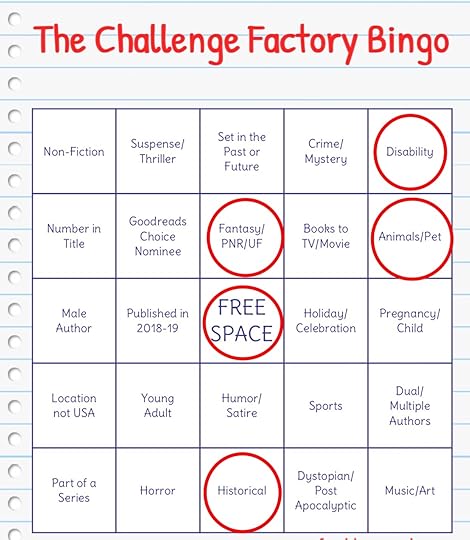As far as planned books go, I am in 2 other challenges so I don't plan that far ahead; I'm basically on a week-to-week cycle. I am very flexible - I've found that it's quite easy to make things work for 2 challenges, or read one quickly and then read another. I have 285 books on my to-read list, so I'm not worried about finding something that fits.