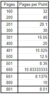 The lower the number of pages per point, the faster you can theoretically accumulate points. This will help you get an idea of the points per page for each tier of pages.
