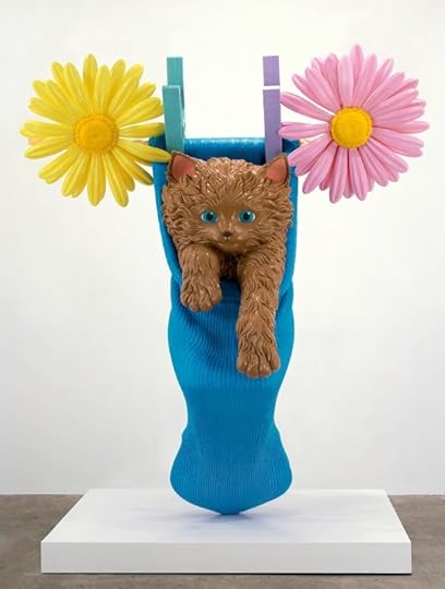 nspired by postcards of kittens suspended in socks, Koons sculpted his outsized polyethylene puss for his “Celebration” series. It was structured as a crucifixion to combine spirituality with preschool joyousness.