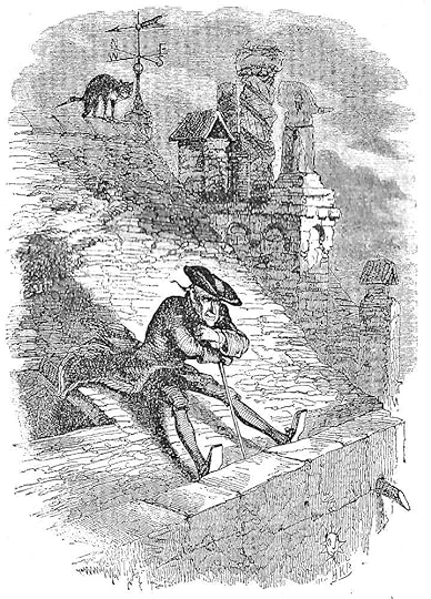 Nevertheless, Gashford now informs them that the King in Council has offered a five-hundred-pound reward for information about anyone who has been involved in the destruction of the Catholic chapels. He tells them there are witnesses against them, one of them being Mr. Haredale, when Barnaby hears the name he looks in, but Hugh tells him to guard, and Barnaby goes off again with his flag. Hugh tells Gashford he could have ruined the whole thing, and Gashford answered he didn't know Barnaby would be so quick. I see no reason for Gashford to hate Mr. Haredale as much as he does, and I really don't see a reason for Hugh to hate him so much, as far as I can remember it was only one time Hugh could have been insulted by something Mr. Haredale had done. Wouldn't it make more sense for him to hate John Willet who treated him as an "animal" for years? Soon they go out to commence rioting once again. Gashford follows them, but he goes to Lord George’s house and watches the proceedings from the window, but not being satisfied with the view, he climbs to the rooftop. Here he waits to see the redness in the sky Hugh had promised him, but there was nothing when the chapter comes to an end.