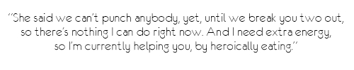 While his mother trained his sister with different, less physical approach, his father and his uncle, Nathaniel, trained him and his brother very physically. The training was tough for him and his brother with them, but with his aunt, Veronica, it was remorseless.