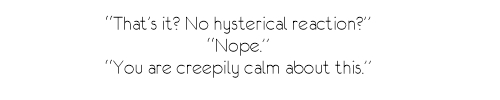 He can be awkward to those he loves, to those he admires, many underestimate him, see him as simply a pretty face, forget that the pretty face masking deadly wits, is, by all means, deadly. He has lived a sheltered life, created a truth for himself by what he has found out, by the information he has been given, but it is a distortion of the truth. He is unaware of that. He is idealistic, and he strives for equality, for the erasure of poverty, of misery, for the promotion of truth and freedom. It is a byproduct of his innocence, or perhaps his innocence is the byproduct of such idealism. He does not discriminate-- all are equal, rules are set for a reason, and the only way such rules should be broken are if they infringe on his moral compass, if the reason is weak, if the judgement behind them corrupt.