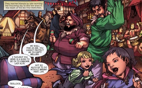 Immagine presa dalla versione a fumetti, non si riferisce però ai Due Fiumi dato che Bel Tine è la principale festa dei villaggi del mondo della Ruota.