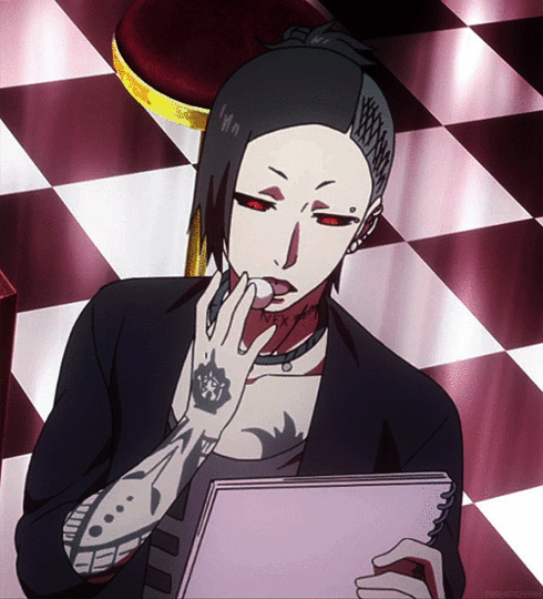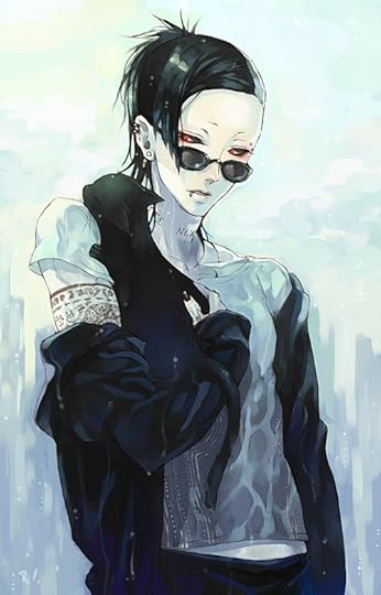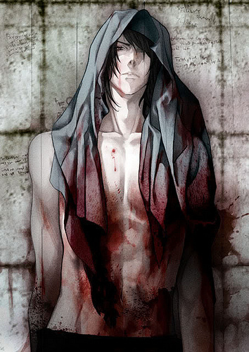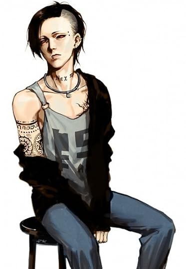 Clothing Style: Most of his wardrobe appear quite gothic compared to others, though only wears what is comfortable to him. He is normally found in a loose dark grey tank top with black cargo pants and spiked boots with gloves. Occasionally he will wear a black hooded jacket that's a few sizes too big for him.