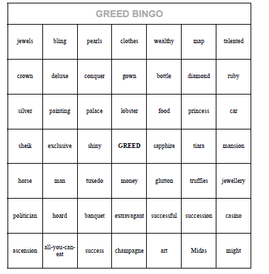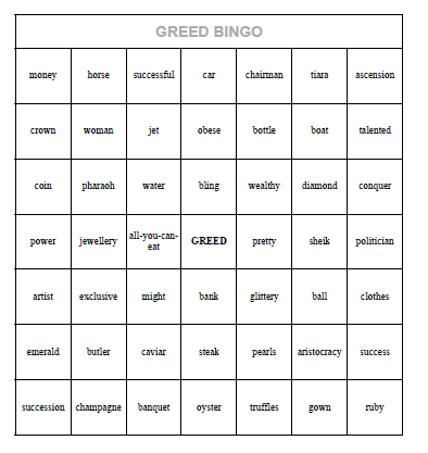Gluttony Sin Bingo