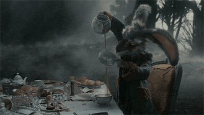 The March Hare, or Alistair in this case, retained most of his personality. He's almost always frantic, jittery and he rarely can stay put in once place for a long period of time. He likes riddles and tea. His words can often confuse people, and although he might not meant it he sometimes spouts odd statements.