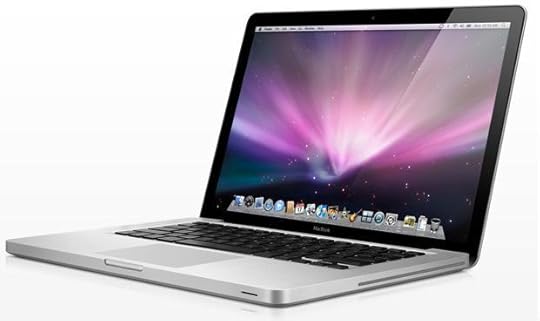 Description: It's a Red IApple laptop. He also has an iPad, iPhone, and IPOD.