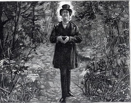 Fred Barnard's thirty-fifth illustration for Martin Chuzzlewit in the Household Edition, the complacent and thoroughly self-assured Seth Pecksniff strolls as he determines to marry Old Martin's companion, Mary, and thereby become de facto heir to a vast estate.