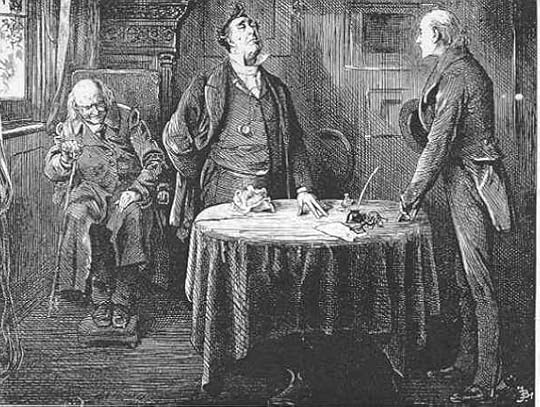 Chapter 31Old Martin's change in attitude towards Pecksniff is unbelievable, and makes me think Dickens made an about turn early in this story like he did in the Curiosity Shop. There is no way the old Martin we met in the first chapters could become the Old Martin in this and the last chapter. That first Old Martin despised Pecksniff.