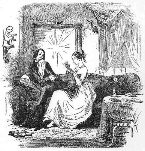 On the seventh night of cribbage, when Mrs Todgers, sitting by, proposed that instead of gambling they should play for ‘love,’ Mr Moddle was seen to change colour. On the fourteenth night, he kissed Miss Pecksniff’s snuffers, in the passage, when she went upstairs to bed; meaning to have kissed her hand, but missing it.