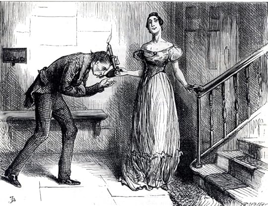 In this illustration by Fred Barnard we see the physical comedy of the awkward courtship o..."