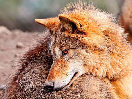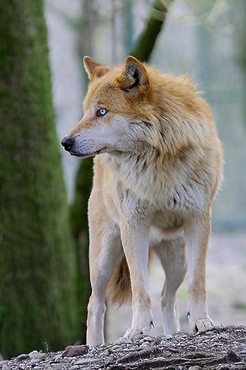 In his wolf form he feels more natural. With Pale hazel blue eyes and blonde fur he doesn't appear half as intimidating as he truly is. However when one sees the Blonde wolf they know to back off.