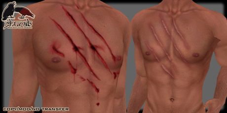 [Distinguishing Marks:] he has two large scars on his back from his father and three small scars on his side from his brother Ryan.