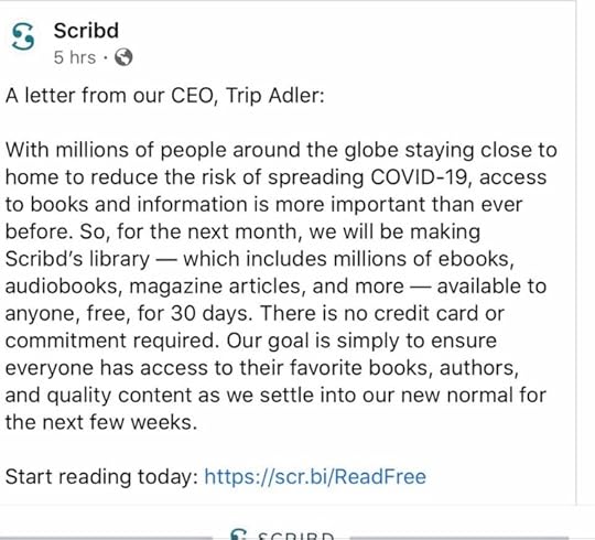 As of today I am working from home by request. I’m fortunate in that my job can mostly be done remotely. No official closing down of my office, but I live with two people who are generally in good health but fall into the higher risk category, so we are trying to practice fairly strict social distancing. On to the books...