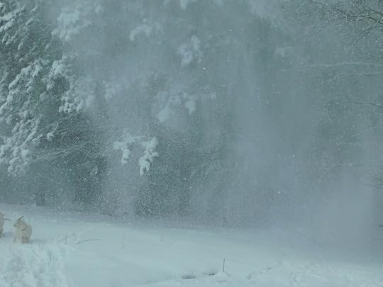 Only yesterday I was cleaning up in the flower gardens and the crocuses were blooming! Those are our friend's goats. :)