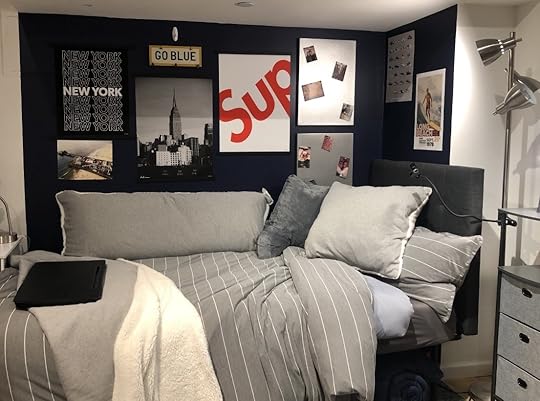 Aeris entered his dorm and settled his bag down. He put on some grey duvet and grey-themed items on his fluffy bed, creating a space that made him want to fall asleep immediately. Aeris also put up some paintings, and smiled as it looked like home; up in the sky with white and grey colours swirling around.