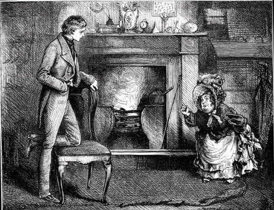 David asks about Martha, and Mr Omer says that there is a "sad story", but David learns no more, as Minnie comes in, and Minnie disapproves of Martha, and what she has done. The news is that Mr Barkis is "as bad as bad could be", so David decides to go straight there, feeling rather solemn about things.