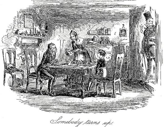 That's my guess as to who it may be, of course many of my guesses are wrong, in a mystery I was reading long ago I never guessed the murderer was a circus bear. Anyway, I think the rumors of his death were wrong, but we will find out sooner or later, at least I hope so. One Thursday morning after David sees Mr. Dick off at the coach he meets Uriah Heep who asks David to have tea with him and his mother, if their "umbleness" doesn't prevent him. Again with that word. David accepts the invitation, and that evening he meets Mrs. Heep, "the dead image of Uriah, only short." I didn't think she looked short in the illustration, but I'm not at the illustrations yet. Mrs. Heep joins her son in umble this and umble that then they proceed to "worm things out" of David about his past life, and then about Mr. Wickfleld and Agnes. David feels uncomfortable and wishes he could leave when Mr. Micawber suddenly appears. He has been walking down the street and through the open door, he spied David. David introduces Micawber to Uriah and his mother, then the two of them leave together and visit Mrs. Micawber, who is very glad to see David. The Micawbers are in terrible financial straits again, Mrs. Micawber explains that at Plymouth her family had been quite cool towards them, especially her husband and his abilities were not wanted there.