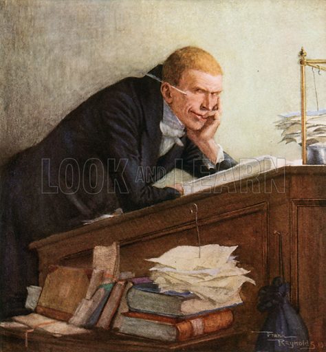 Cohen also notes the mousetrap as symbolic, and the juxtaposition of the legal almanac with it and the two ceramic cats; she does not, however, mention either the many legal documents and books on the sideboard and precarious shelf above it, or the portrait of magistrate in a wig in the right hand corner, all of which imply both Uriah's methods of advancement and his pretensions to power, status, and above all respectability. In the text, David "reads" none of these objects, but in such details "Browne's illustrations often bridge the gap between the the hero's naivete and the world's realities" (Cohen 105).