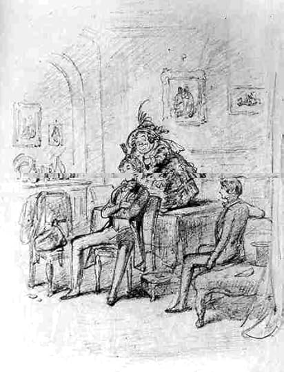 Again David pays for a dinner with Steerforth and Friends, just as in the earlier chapters. This time he appears to choose the food himself - at least he chooses the mock turtle slab and the dessert himself, but Mrs. Crupp chooses most of it. Every time I'm hoping he'll see Steerforth is bad news, but he never does.