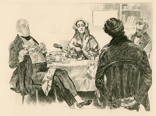 David’s second dinner party in his rooms is with Mr and Mrs Micawber and Traddles. It is less stressful than the first with Steerforth. The Micawber’s and Traddles are delighted with his lodgings. Mr Micawber is in full verbal flight and Mrs Micawber still remains his trusty and long-suffering wife. Traddles remains in the background, no doubt partly overwhelmed by the effusive Micawber. As the party continues, it becomes increasingly apparent that the Micawber’s are again very poor in terms of money but rich in hopes, dreams, and fantasy. David first believes the dinner will be “a failure” but he was relieved by the great good humour of my company and the group’s cooperation in preparing the food. In fact, the dinner was so enjoyable David tells us he forgot Dora for a little while. High praise indeed for his companions.
