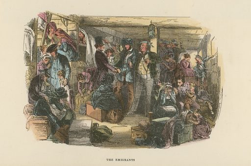 This illustration set in the hold of the boat is somewhat reminiscent of the illustrations of the Peggotty house early in the novel. In this illustration we have the Peggotty family together again, without, of course, Ham. The link of boats and Peggotty is maintained, but one feels that once in Australia, the family will not be directly connected to the sea.