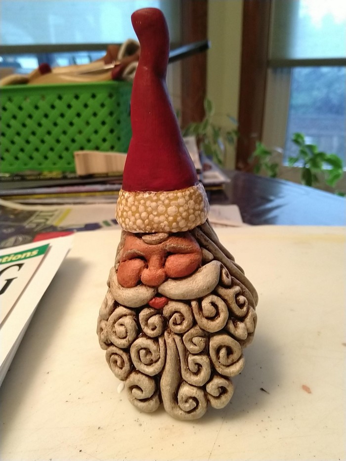 I finished painting my Santa carving today. He will be turned into an ornament and hang on the tree next year. I am very pleased with him and think he's my best work of the year.